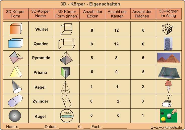 Würfel, Quader, Pyramide, Prisma, Kegel, Zylinder, Kufgel;