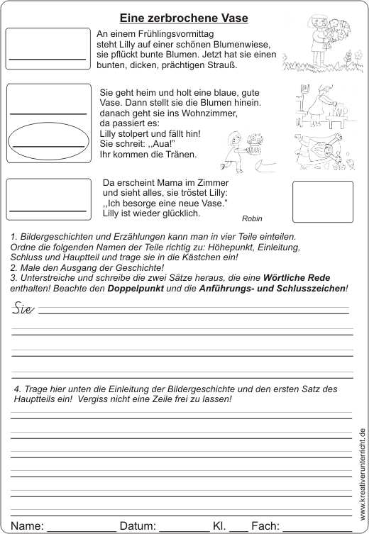 Einteilung von Bildergeschichten und Erzählungen und die Wörtliche Rede kennen lernen
