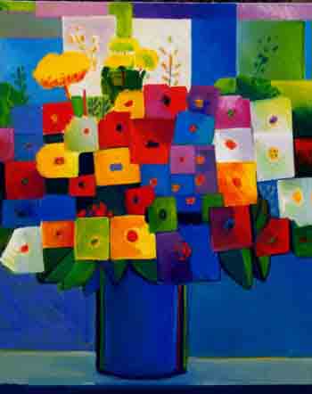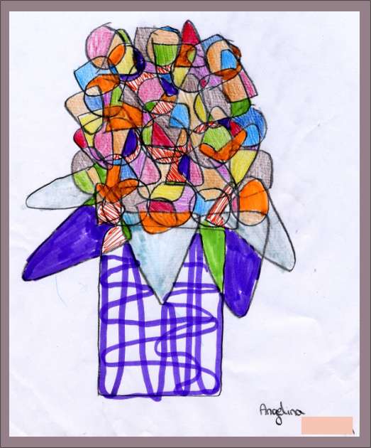 Der in Frankreich lebende Künstler hat Blumen ganz verschieden gemalt. Die Schüler sollten beide Bilder nachempfinden und ihre Meinung dazu äußern - “mehr wie echte Blumen der mehr wie geometrische Blumen mit Kreisen und Vierecken”?