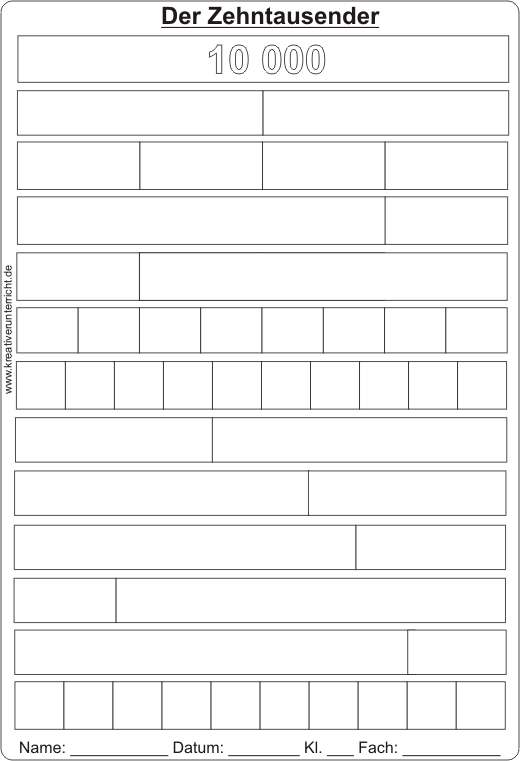 Vorbereitende Hausaufgabe: Male 1000 Kästchen in dein Rechenheft! Ziel: Den Zehntausender mit zehn Schülern einprägsam darstellen.