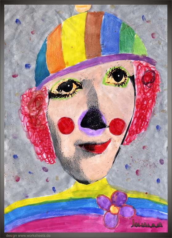 Der Kopf wurde für die Schüler auf ein DIN A3 Blatt kopiert. Sie mussten nun ihre eigene Vorstellung von einem Clown gestalten.