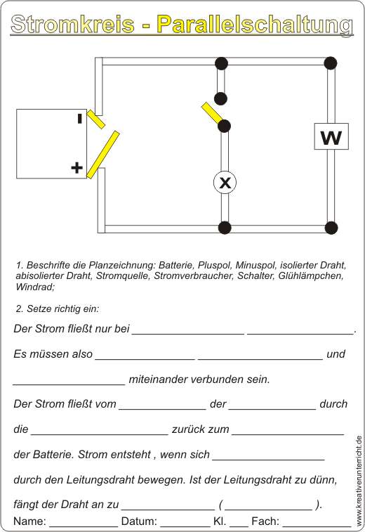 Der einfache Stromkreis und die Parallelschaltung - Arbeitsblatt und Videoclip