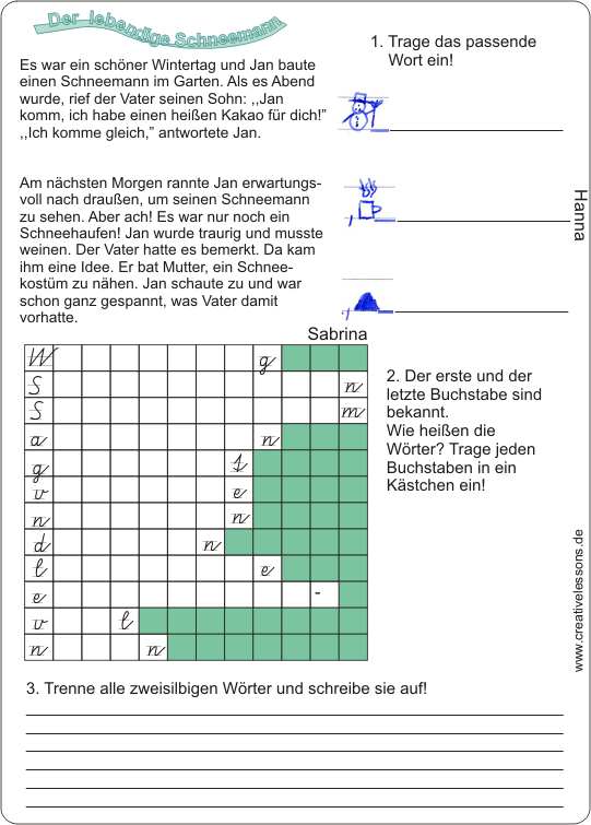 Nachrift aus der Bildergeschichte “Der lebendige Schneemann”