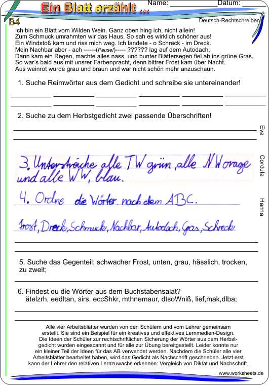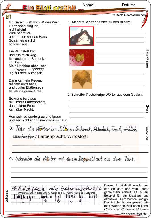 Ein Blatt erzählt - Gedicht zum Weiterdichten (Nachschrift)