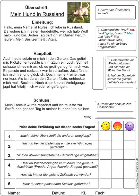 Schüler lernen die Kriterien der Bewertung von Erzählungen kennen. Sie werden im Klassengespräch erarbeitet, können aber auch selbsständig gefunden werden.