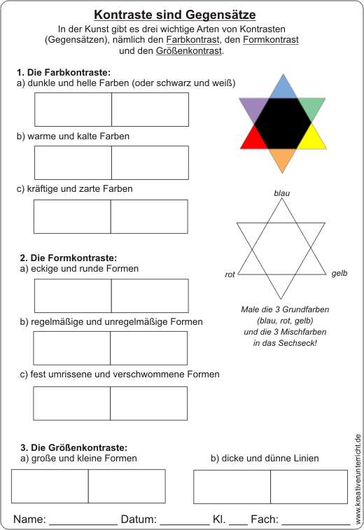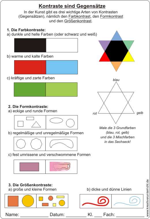 Farbenlehre: Kontraste sind Gegensätze - Farbkontrast, Formkontrast, Größenkontrast;