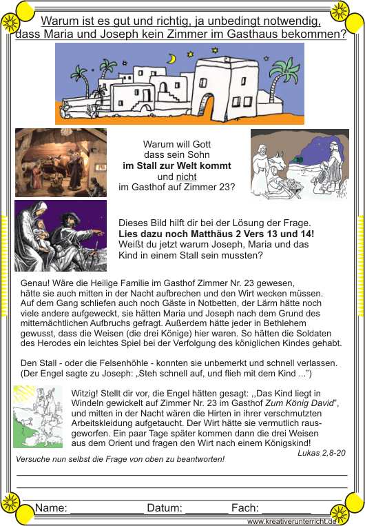 Warum ist es gut und richtig, ja unbedingt notwendig, dass Maria und Joseph kein Zimmer im Gasthof bekommen?