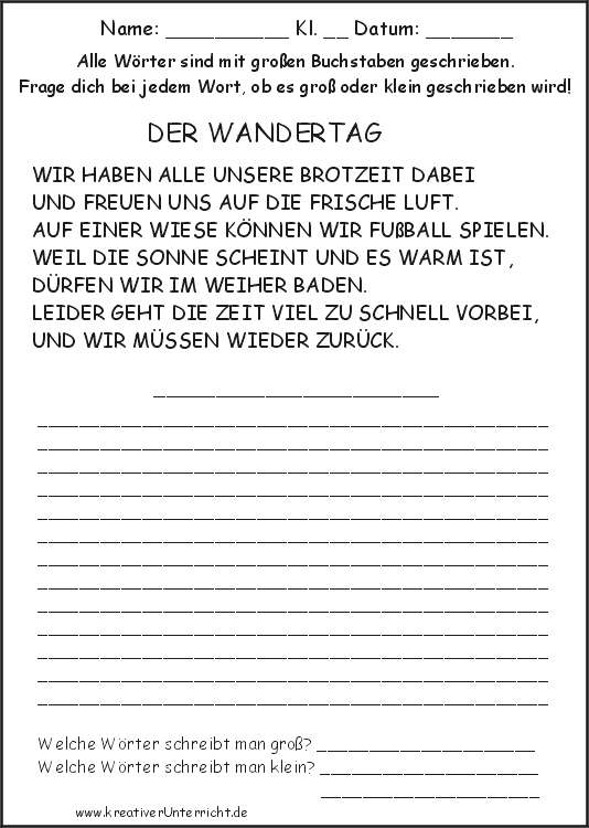 Hier ein Beispiel, wie ich versucht habe, die Fehler der Schüler nach einer Diagnose (Siehe Fehleranalyse) zu therapieren. Hauptfehlerquote war die Groß- und Kleinschreibung (Siehe nachstehendes Arbeitsblatt!). Die zweite Fehlerquelle schienen die mangelnde Konzentration und Wortbildauffassung zu sein. Mit der von mir erfundenen Methode der “Israelischen Geheimschrift” versuchte ich diesem Mangel abzuhelfen.