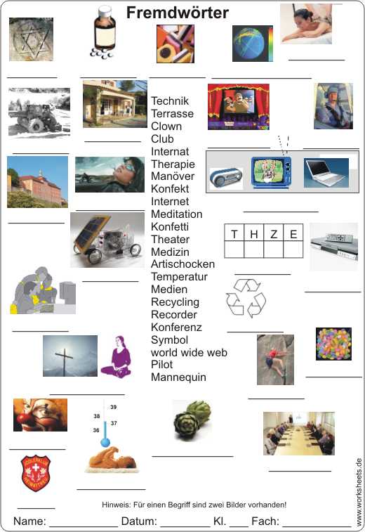 Fremdwörter kennen und erkennen - Wort und Bild zuordnen