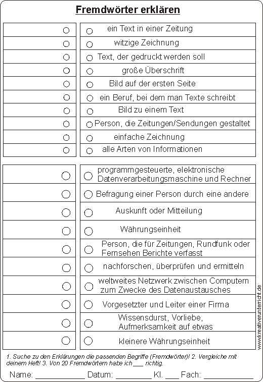 Fremdwörter erklären Zuordnen Puzzle