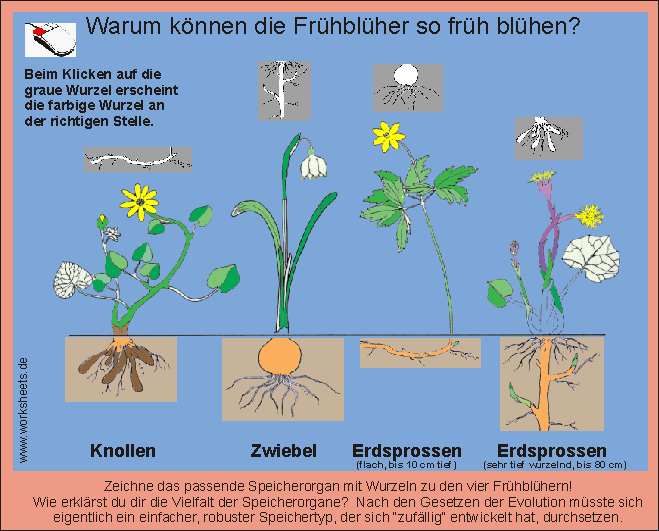 Lernmethode “TAUSCH” heißt hier: Zuerst die Wurzel zu den Pflanzen finden und dann umgekehrt die Pflanzen zu den verschiedenen Wurzeltypen finden