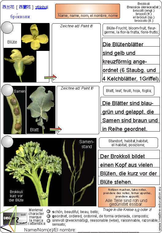 Gemüse im Garten: Brokkoli (lat. Brassica oleracea, engl. broccoli, fr. brocoli, sp. el bróculi, it. broccolo)