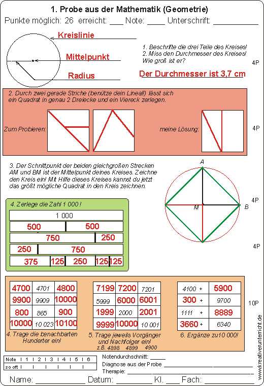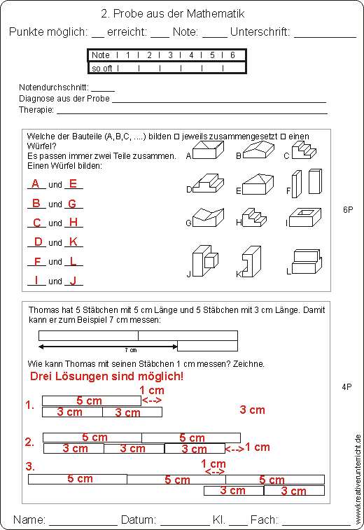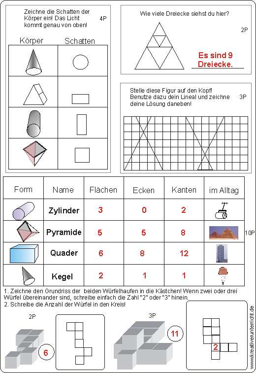 Geometrie Probe Klasse 3: Längen, Flächen, Körper und deren Eigenschaften