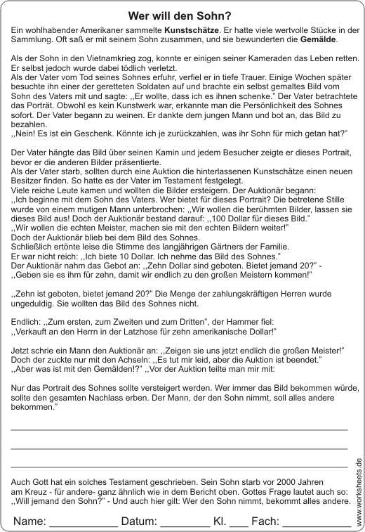 Für den Christen geht es nicht um das Einhalten von Gesetzen, sondern um die Annahme und Aufnahme einer Person: Jesus Christus. Wer ihn aufnimmt, wird Gottes Kind und damit hat der Christ Gott zum Vater. Er, der Vater, hat uns zuerst geliebt, darum können wir ihn und unsere Mitmenschen, ja sogar unsere Feinde lieben. |