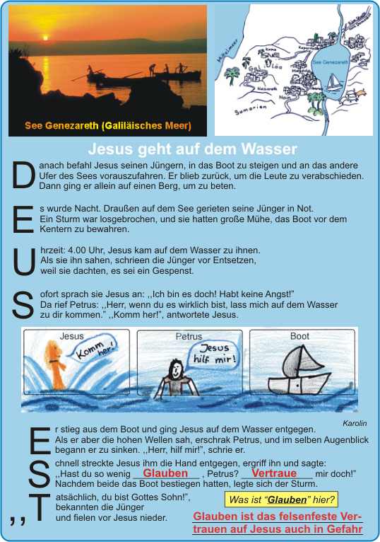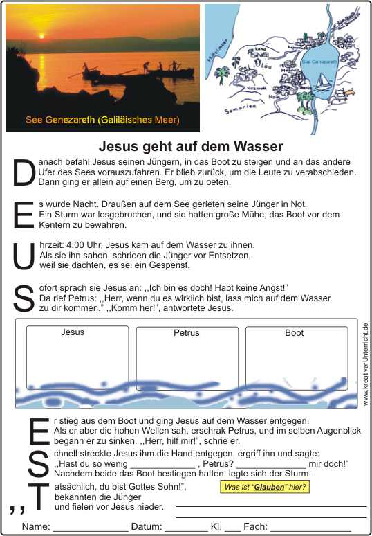 Jesus geht auf dem Wasser- Erkennen, was “glauben” eigentlich ist. Arbeitsblatt und Lösungsfolie