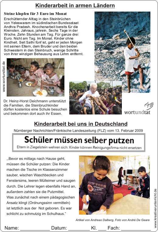 Arbeitslehre-Wirtschaft-Technik (AWT): Kinderarbeit in armen Ländern-Kinderarbeit bei uns in Deutschland