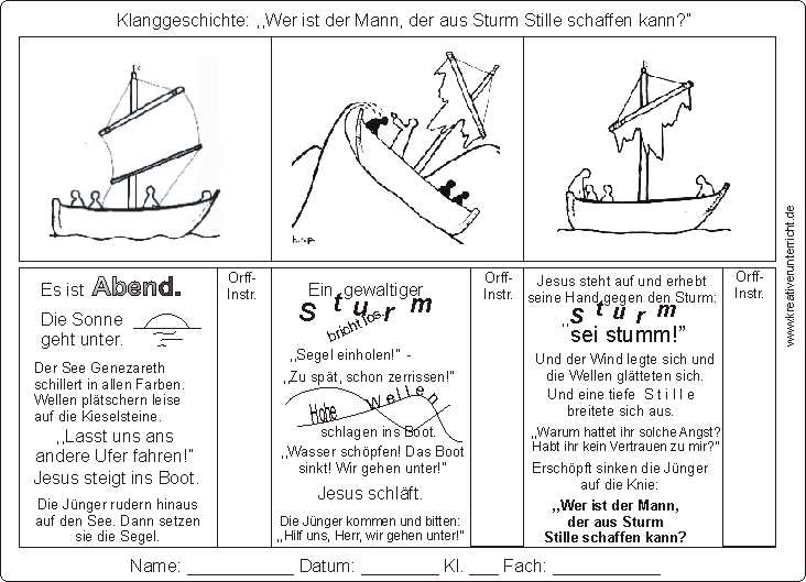 Klanggeschichte Sturmstillung: ,,Wer ist der Mann, der aus Sturm Stille schaffen kann?” Arbeitsblatt