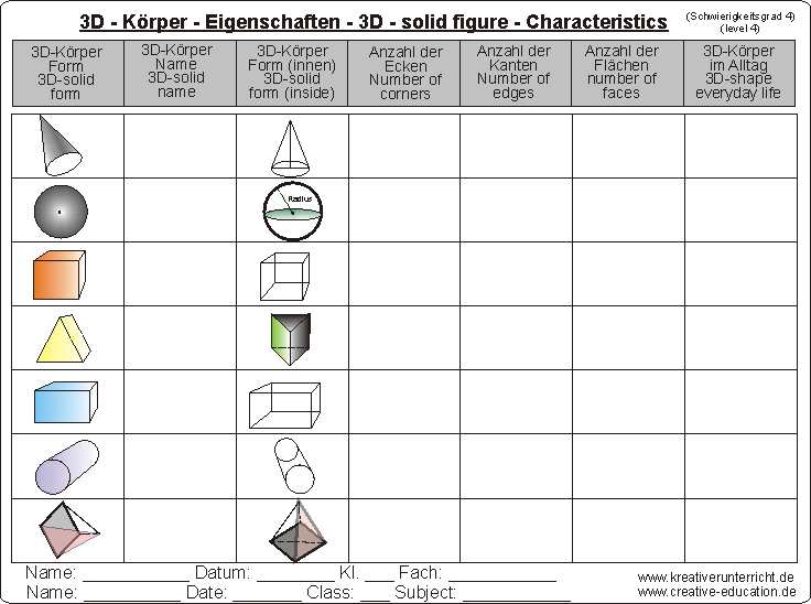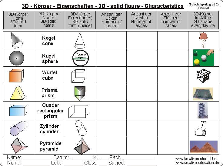 3D - Körper - Eigenschaften - 3D - solid figure - Characteristics