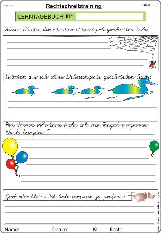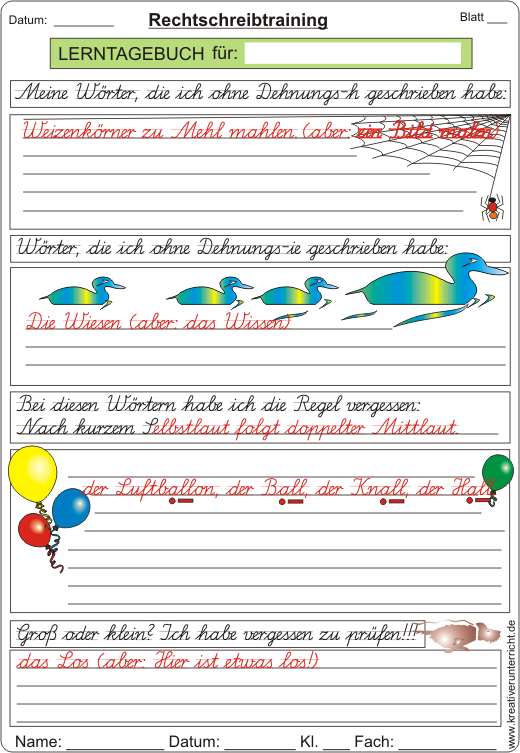 Rechtschreibtraining mit dem Lerntagebuch in Lateinischer Ausgangsschrift (VA und Lösungsfolie siehe unten!)