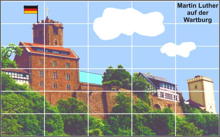Martin Luther auf der Wartburg - Vier einfache Puzzles - auch für einen Lernzirkel geeignet - werden vom Lehrer oder von den Schülern zerschnitten und dann wieder von Gruppen oder in Partnerarbeit zusammengesetzt.