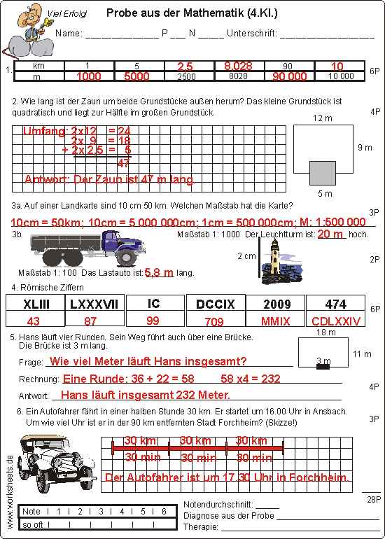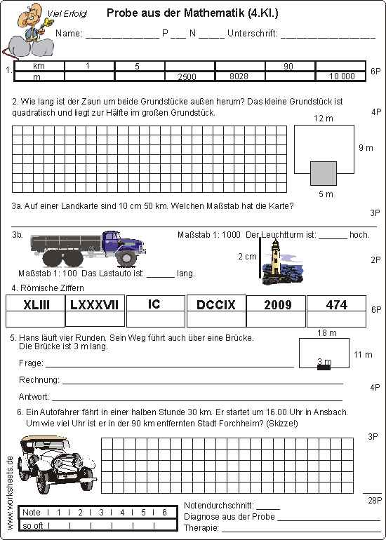 Probe aus der Mathematik in der vierten Klasse: Längenmaße, Umfang, Maßstab und Römische Ziffern