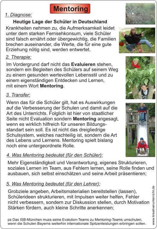 Mentoring statt Evaluation - Diagnose, Therapie, Transfer