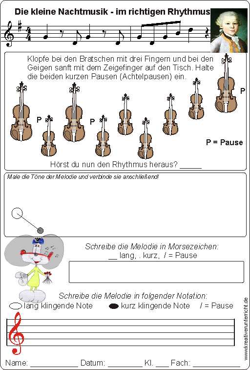 Mozart for Kids - Die kleine Nachtmusik mit Rhythmus - Rhythm - Erkennen der Struktur des Rhythmuses nachempfinden des Rhythmuses und kennenlernen einfacher und anschaulicher Schreibweisen.