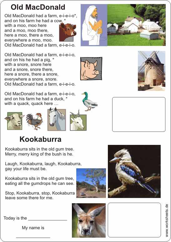 Two songs without sheets of music: Old Mac Donald had a farm - Kookaburra sits in the old gum tree.
