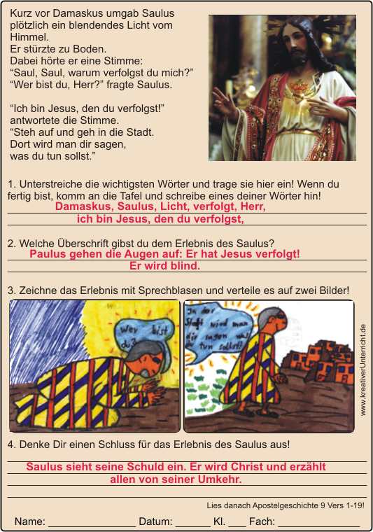 Paulus auf dem Weg nach Damaskus - Mit blindem Hass verfolgt er die Christen. Jesus Wort macht ihn sehend, da wird er blind.