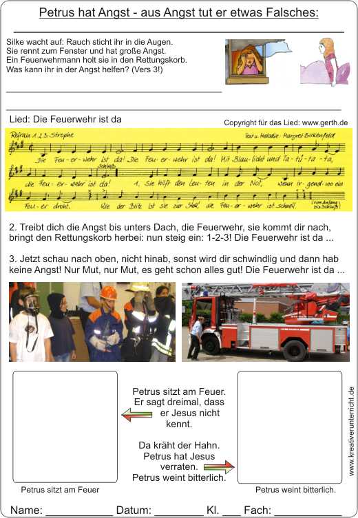 Einstieg zum Thema: Petrus hat Angst und sagt dreimal dass er Jesus nicht kennt.