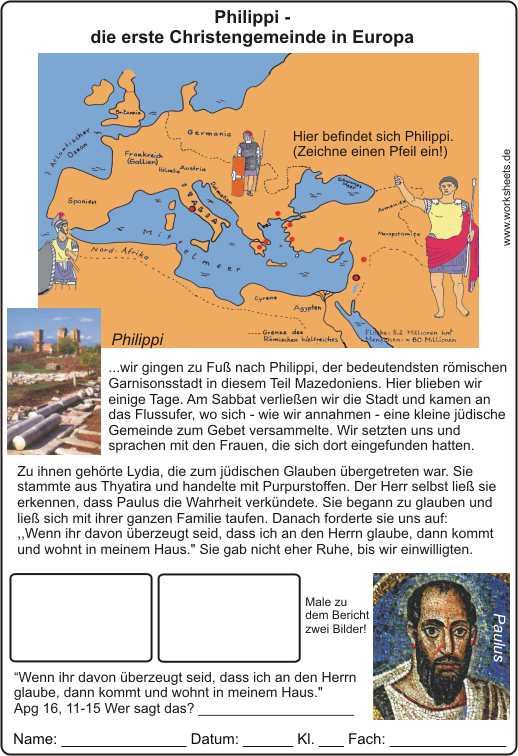 Philippi, die erste Christengemeinde in Europa bei der Purpurhändlerin Lydia. (Apostelgeschichte 16 Vers 11-15)
