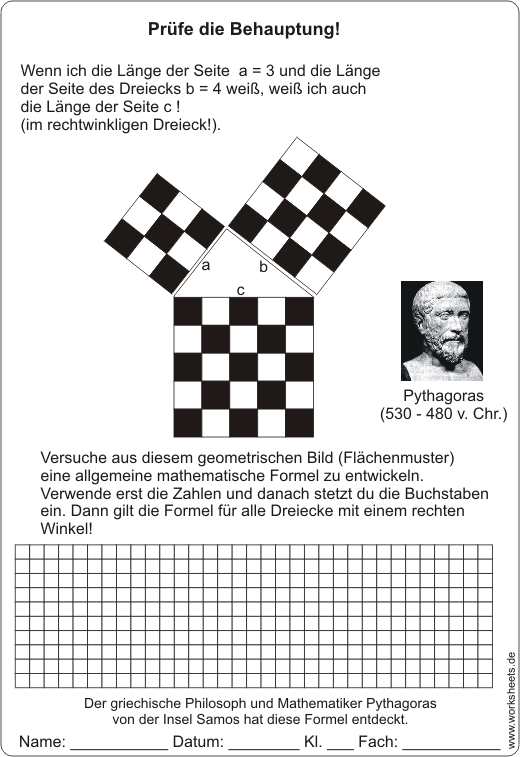 Lehrsatz des Pythaoras selbst entdecken: a2 + b2 = c2 oder a mal a + b mal b = c mal c!