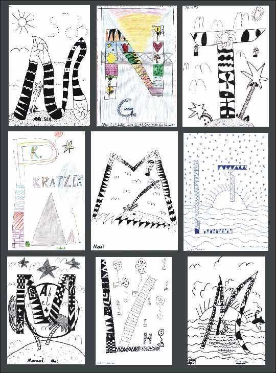Initialen in Schwarz-Weiß-Graphik Klasse 4c