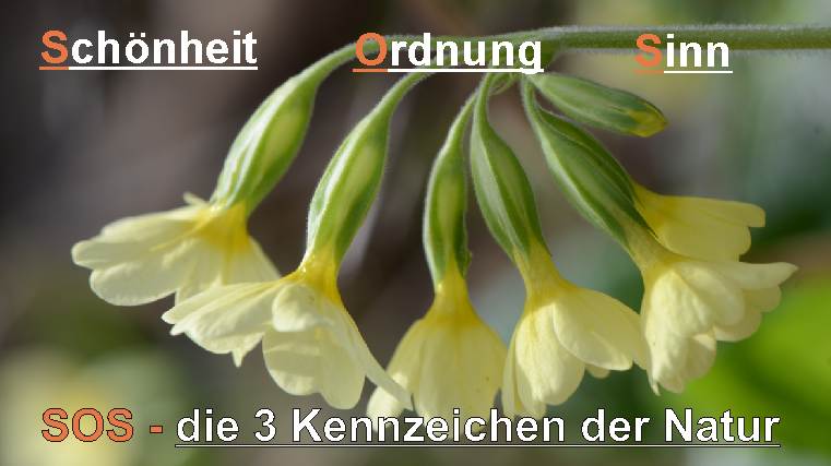 Die drei Kennzeichen der Natur sind: Schönheit, Ornung und Sinn. Bei einigen Lebewesen kann man leicht auch das vierte Kennzeichen entdecken: Vielfalt/Komplexität.