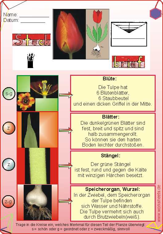 Was sind die Hauptmerkmale der Pflanzenteile? Verwende dazu die Kennzeichen der Natur: Schönheit (s), Ordnung (g), Sinn(z) und Vielfalt (v)!