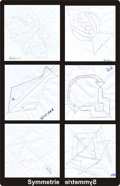 Ein quadratisches Blatt (vom DIN A4 Blatt) diagonal falten und eigene Halbfigur entwerfen.