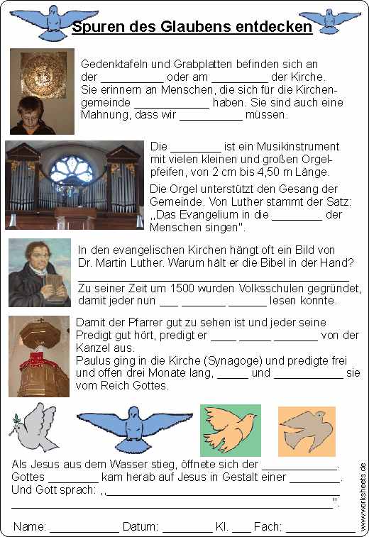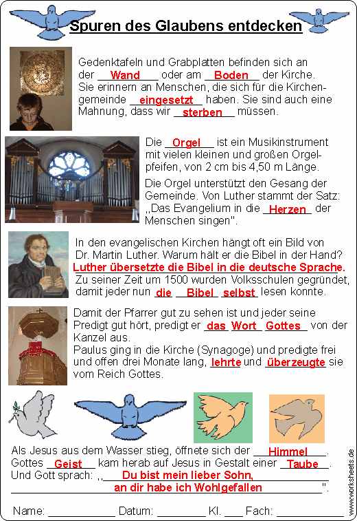 Taube, Kanzel, Orgel, Genktafeln und Grabmale und Bilder (Martin Luther) - in allen kann man Spuren des Glaubens entdecken.