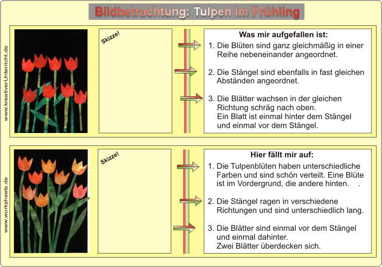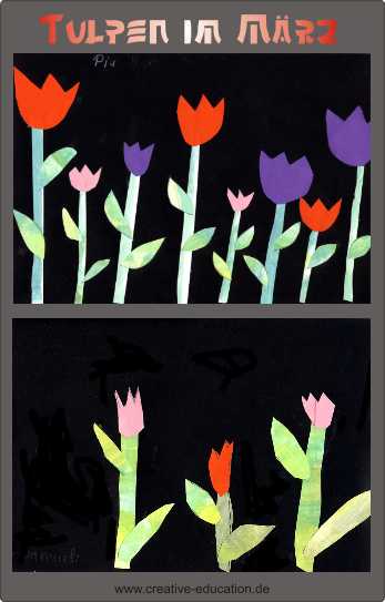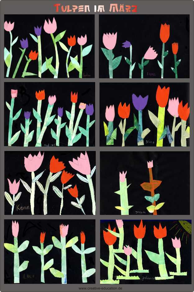 Super kreative Ergebnisse einer zweiten Klasse zu den Tulpen im März