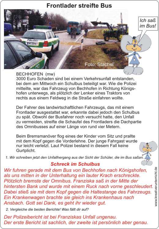 Vergleich eines Zeitungsberichts mit dem persönlichen Bericht der Kinder, die den Unfall miterlebt haben.