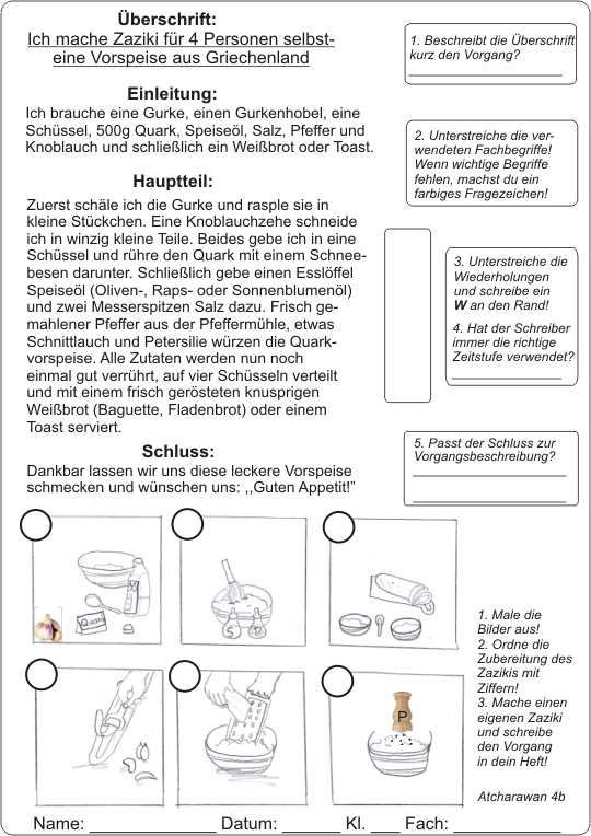 Vorgangsbeschreibung: Ich mache Zaziki für vier Personen selbst - eine Vorspeise aus Griechenland