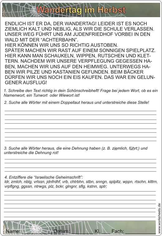Wandern im Herbst - ein Erlebnis (Nachschrift für die 4. Klasse)
