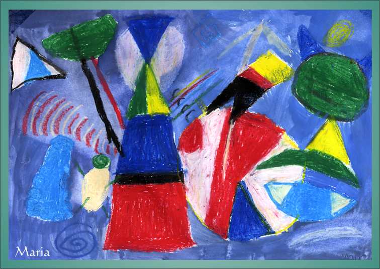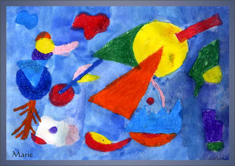 Ihre Lehrerin Sandra Wollani hat natürlich vorher Farben und Formen des Bildes besprochen und mit Ölkreiden und Wasserfarben gestalten lassen.