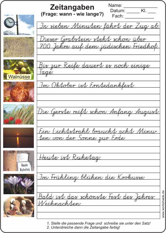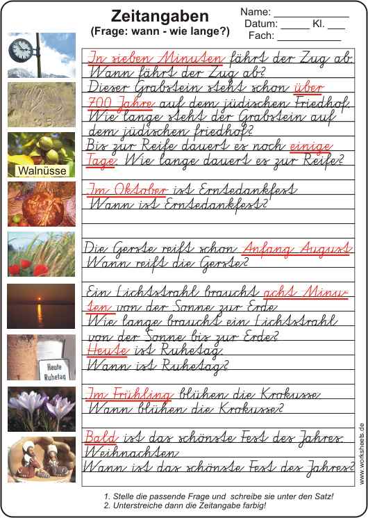 Sprachlehre - Zeitangaben (wann? wie lange?)als Arbeitsblatt mit Lösungsfolie
