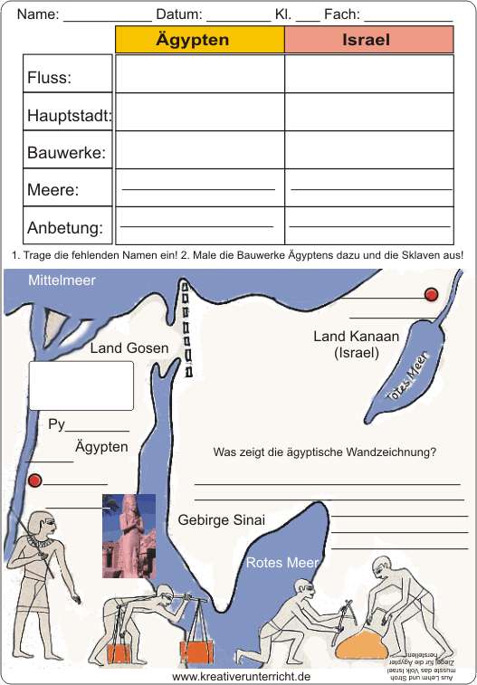 Ägypten-Israel-Vergleich Arbeitsblatt mit Lösungsfolie