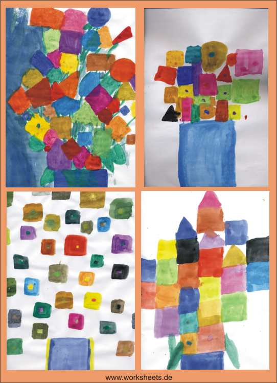 Der in Frankreich lebende Künstler hat Blumen ganz verschieden gemalt. Die Schüler sollten beide Bilder nachempfinden und ihre Meinung dazu äußern - “mehr wie echte Blumen der mehr wie geometrische Blumen mit Kreisen und Vierecken”?