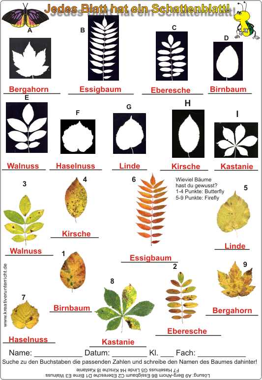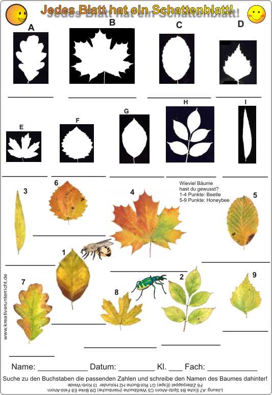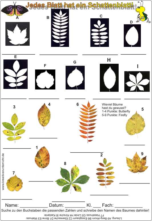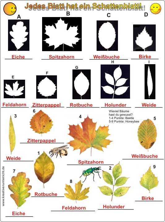 Die “abstrrakten”, auf Form und zwei Farben reduzierten Herbstblätter in Schwarz-Weiß erleichtern das Einprägen durch Reduktion der Merkmale. Durch den Vergleich mit dem wirklichen Blatt wirdauch die Farbe und die Blattstruktur (z.B. Blattadern) neu gesehen und erlebt.