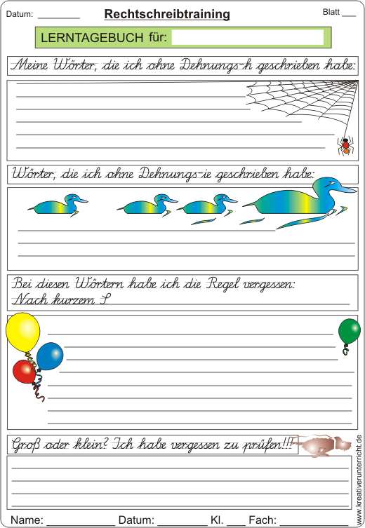 Rechtschreibtraining mit dem Lerntagebuch in Vereifachter Ausgangsschrift