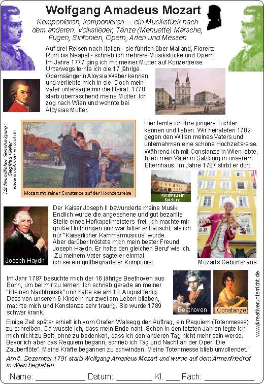 Wolfgang Amadeus Mozart -for Kids - für Kinder - a biography - ein Lebenslauf - 250 years Mozart - 250 Jahre Mozart