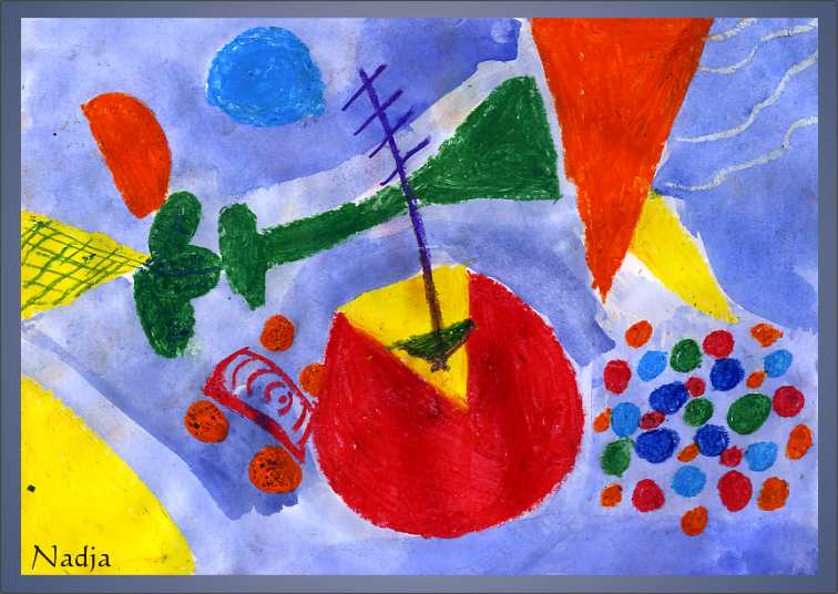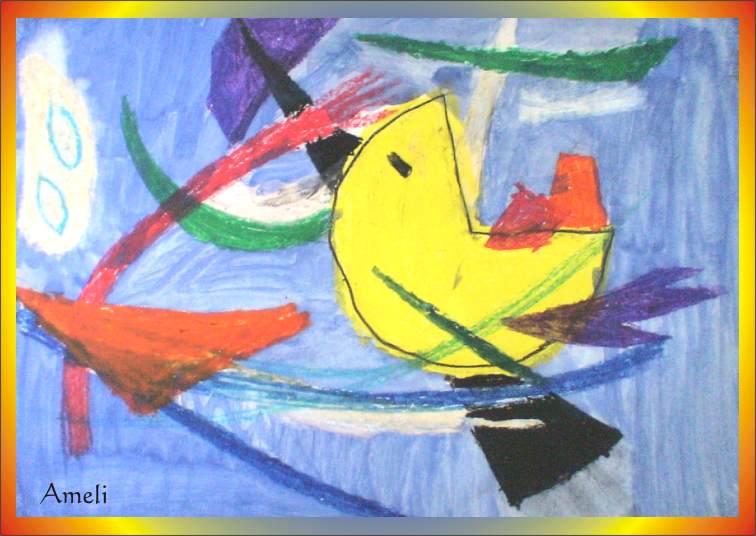 Ihre Lehrerin Sandra Wollani hat natürlich vorher Farben und Formen des Bildes besprochen und mit Ölkreiden und Wasserfarben gestalten lassen.